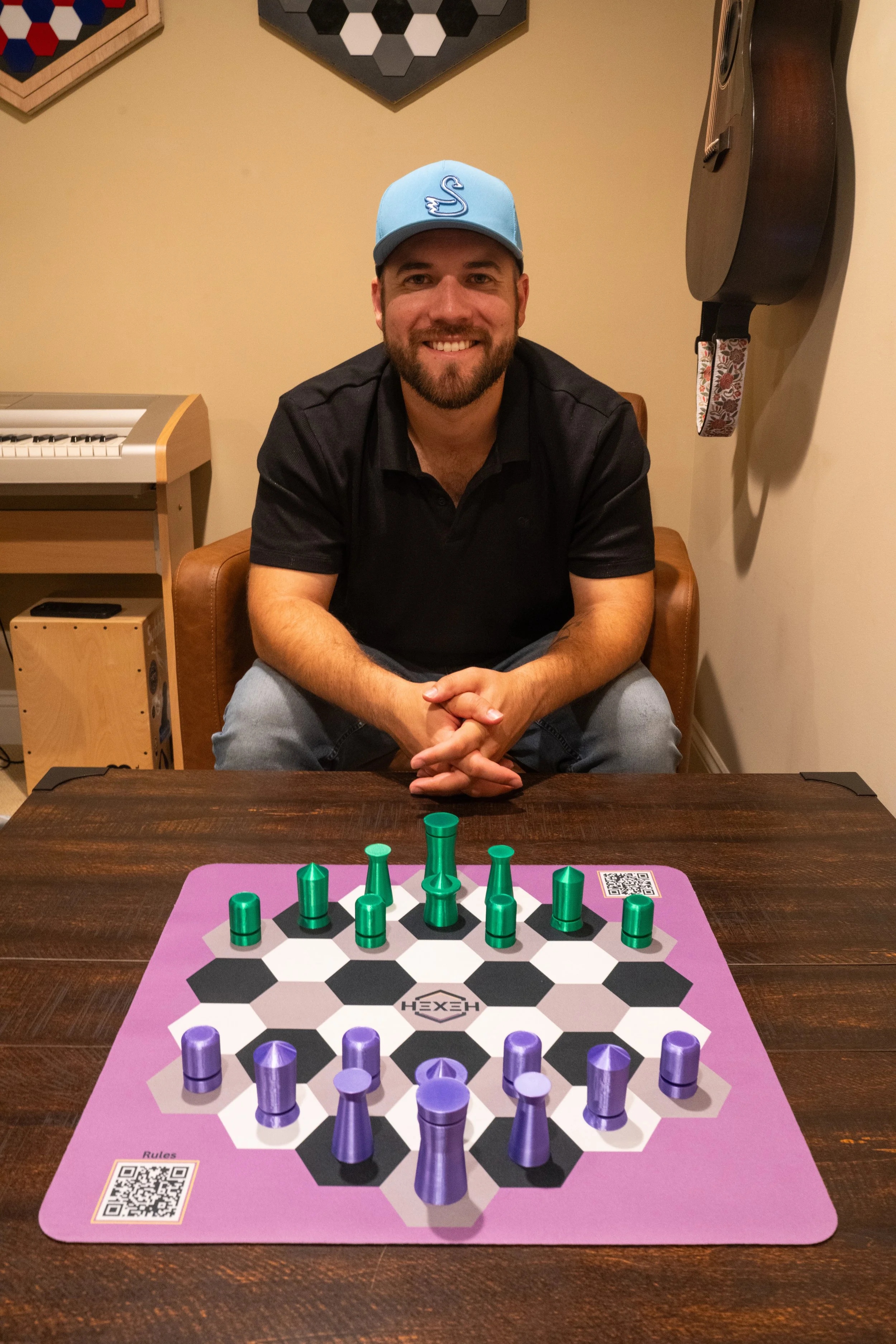 Richie is the visionary behind Hexeh. The idea for the game started with a piece of abstract art his wife made for their son's nursery. Something about the hexagons on canvas made him think, “the next big strategy game is right here on this pattern.” That thought turned into an obsession. He spent two years designing Hexeh from scratch, fueled by tea and late-night prototypes. Every rule, mechanic, and piece was tested, tweaked, and refined. Richie’s passion lies in building competitive systems that invite people in, not shut them out. Hexeh is his answer to a lifelong love of games and a desire to reshape how strategy can feel: beautiful, approachable, and deeply satisfying.